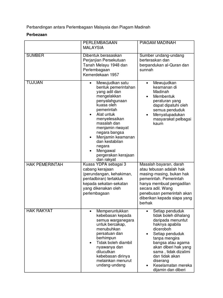Perbandingan Antara Perlembagaan Malaysia Dan Piagam Madinah Pdf