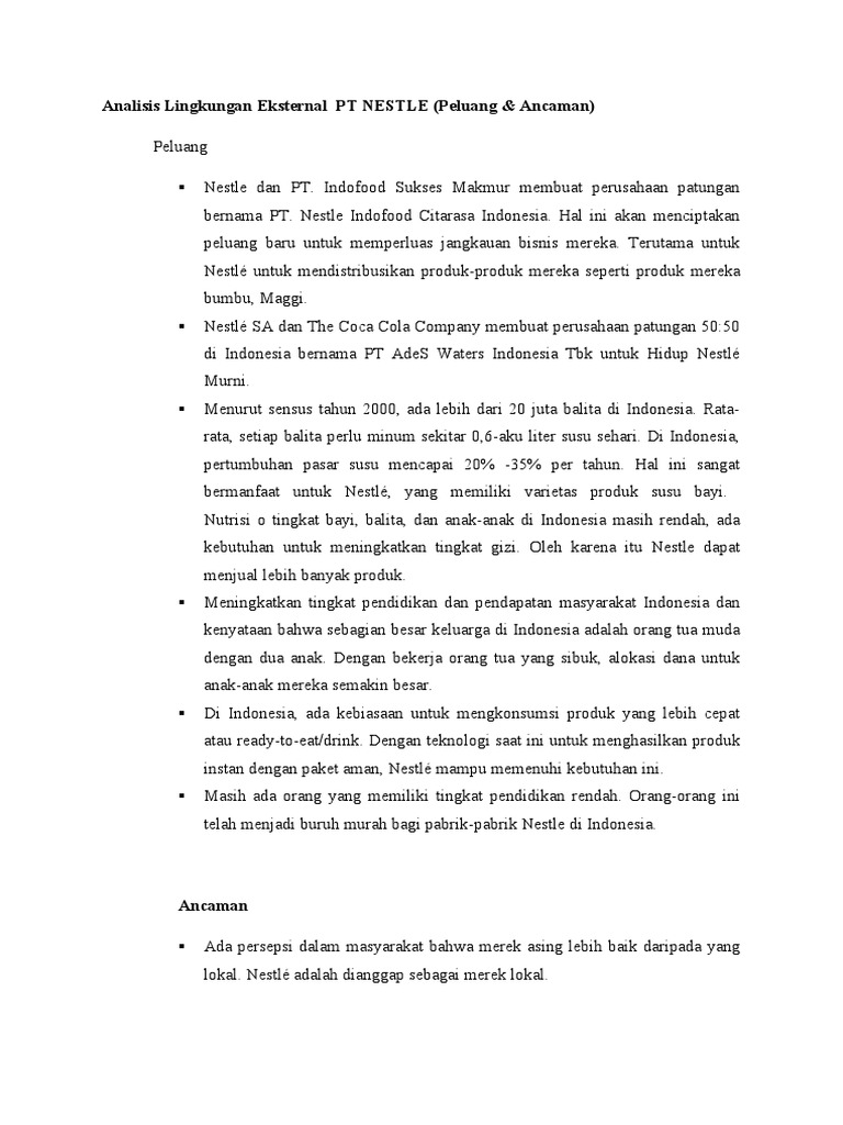 Analisis Lingkungan Eksternal Pt Nestle Pdf