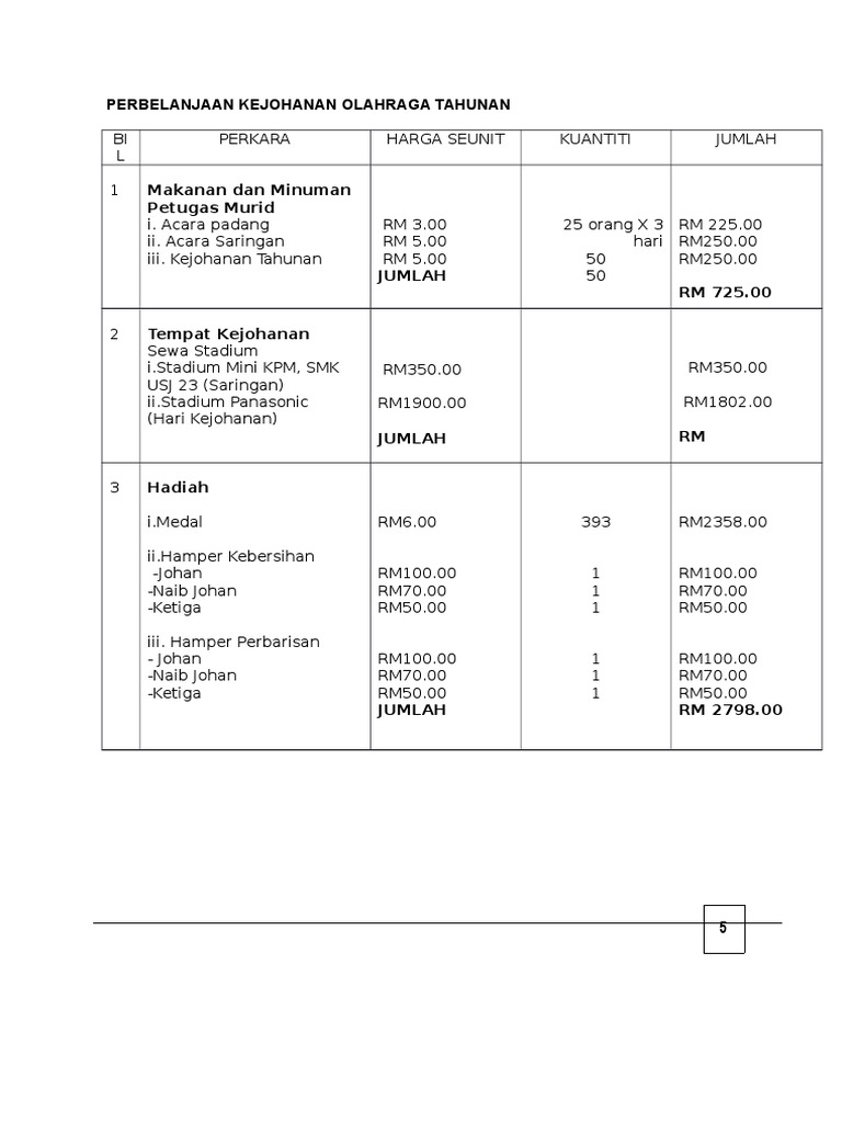 Anggaran Perbelanjaan Kejohanan Olahraga Tahunan Pdf