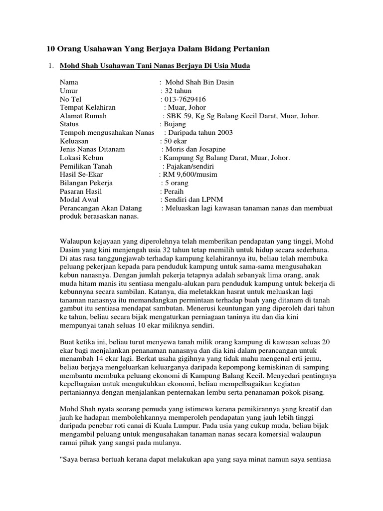 10 Orang Usahawan Yang Berjaya Dalam Bidang Pertanian Pdf