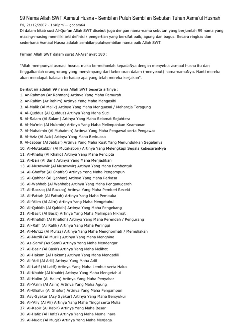 99 Nama Allah Swt Beserta Artinya